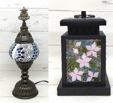 色とりどりのガラスやビーズを使ってトルコランプやランタンを作ります(お好きなものをお選びいただけます)