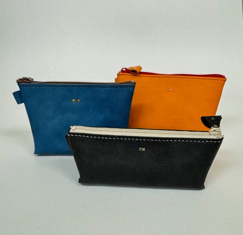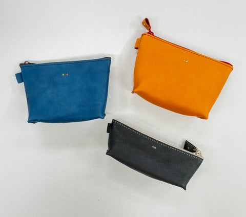 ファスナー引手とワンポイントの刺繍がかわいいポーチ。革のカットから製作します。