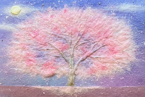 『和紙ちぎり絵で作る富士と桜、キラキラ満月と夜桜』★