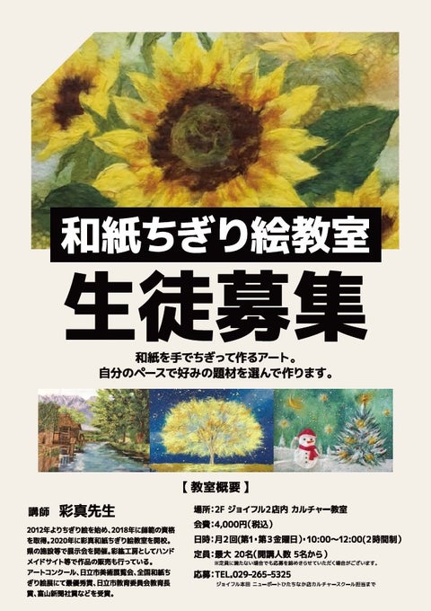 カルチャー教室【和紙ちぎり絵教室 生徒募集中!】