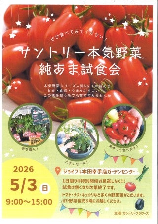 この味をおうちでも育ててみませんか?1日限りの特別開催なのでお見逃しなく!!試食のトマトは無くなり次第終了となります。