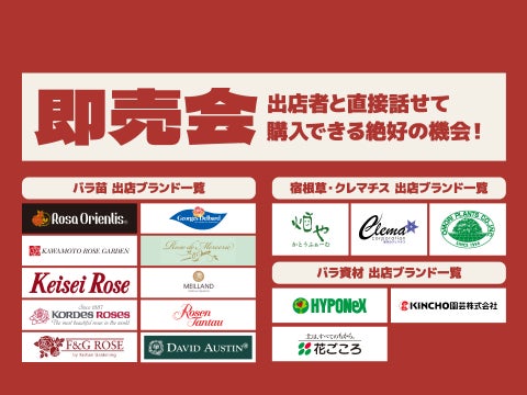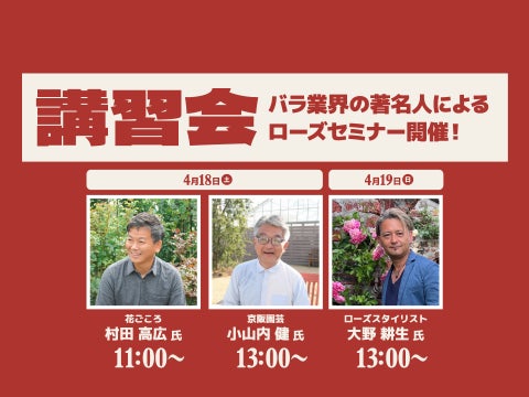 人気イベント植フェス開催!今回のテーマは『バラに魅了される2日間』バラ・クレマチス・宿根草の苗をはじめ、各種資材などを生産者やメーカーから直接購入できる販売会をはじめ、バラ業界の有名人による連日のバラセミナーにも注目です!心やすらぐ美しいバラの世界をお楽しみください!