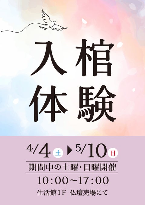 期間中の土曜日・日曜日開催(10:00~17:00)で入棺体験を実施しております。