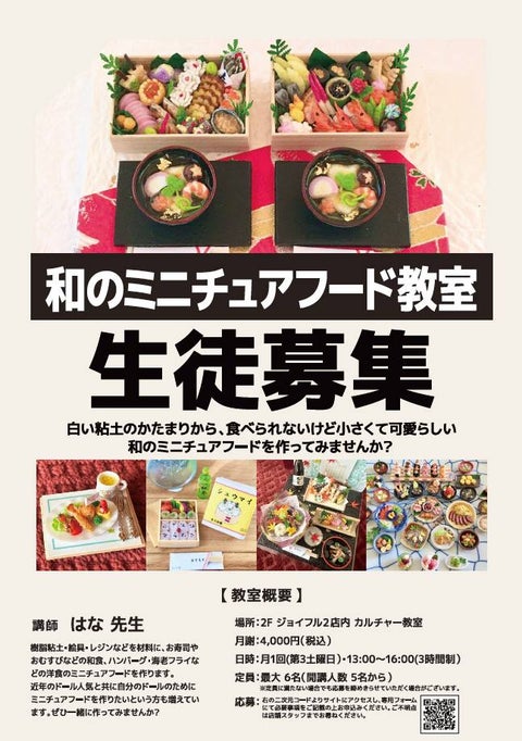 カルチャー教室【和のミニチュアフード教室 生徒募集中!】