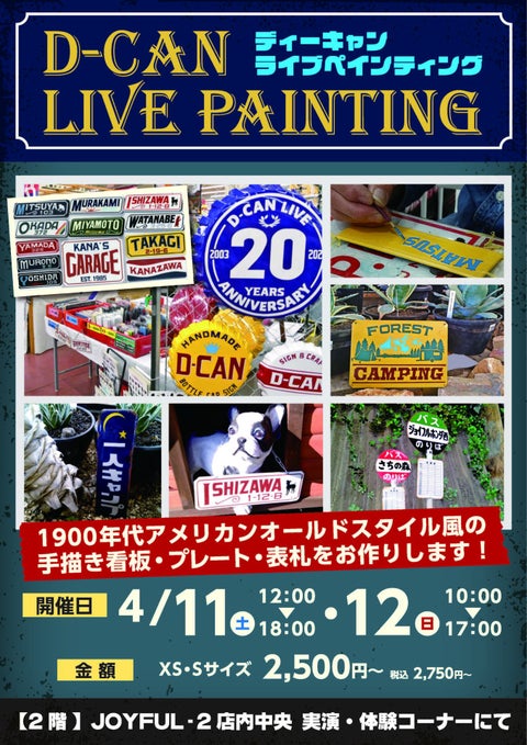 D-CAN金澤氏による手書き看板・表札のライブペインティング実演販売を開催!お好きな文字、内容で世界に一つのアメリカンオールドスタイル看板を作成いたします。